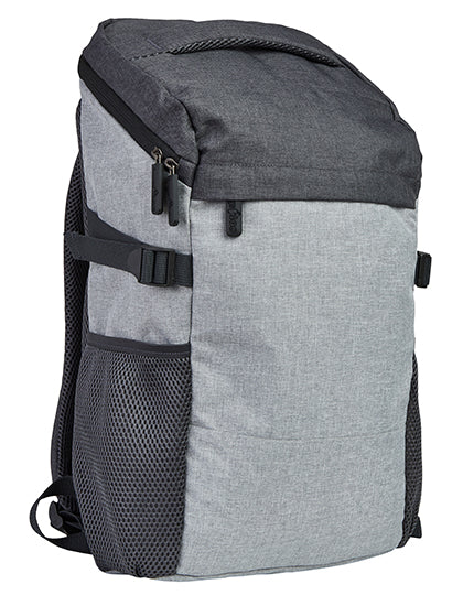 600D Polyester Notebook-Rucksack in dunkel- und hellgraumeliert | Obenliegende, verstärkte Abdeckung in Dunkelgrau mit 2-Wege-Reißverschluss in U-Form | Obenliegender, gepolsterter...