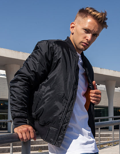 Set-In-Ärmel | Neutrales Größenlabel ohne Branding | Einsatz im Nackenbereich für Druck | Reißverschlüsse an der hinteren Innenseite für einfaches Veredeln der Vorder- und Rückseite | Orangenfarbenes Innenfutter | Aufgesetzte Tasche am rechten Ärmel