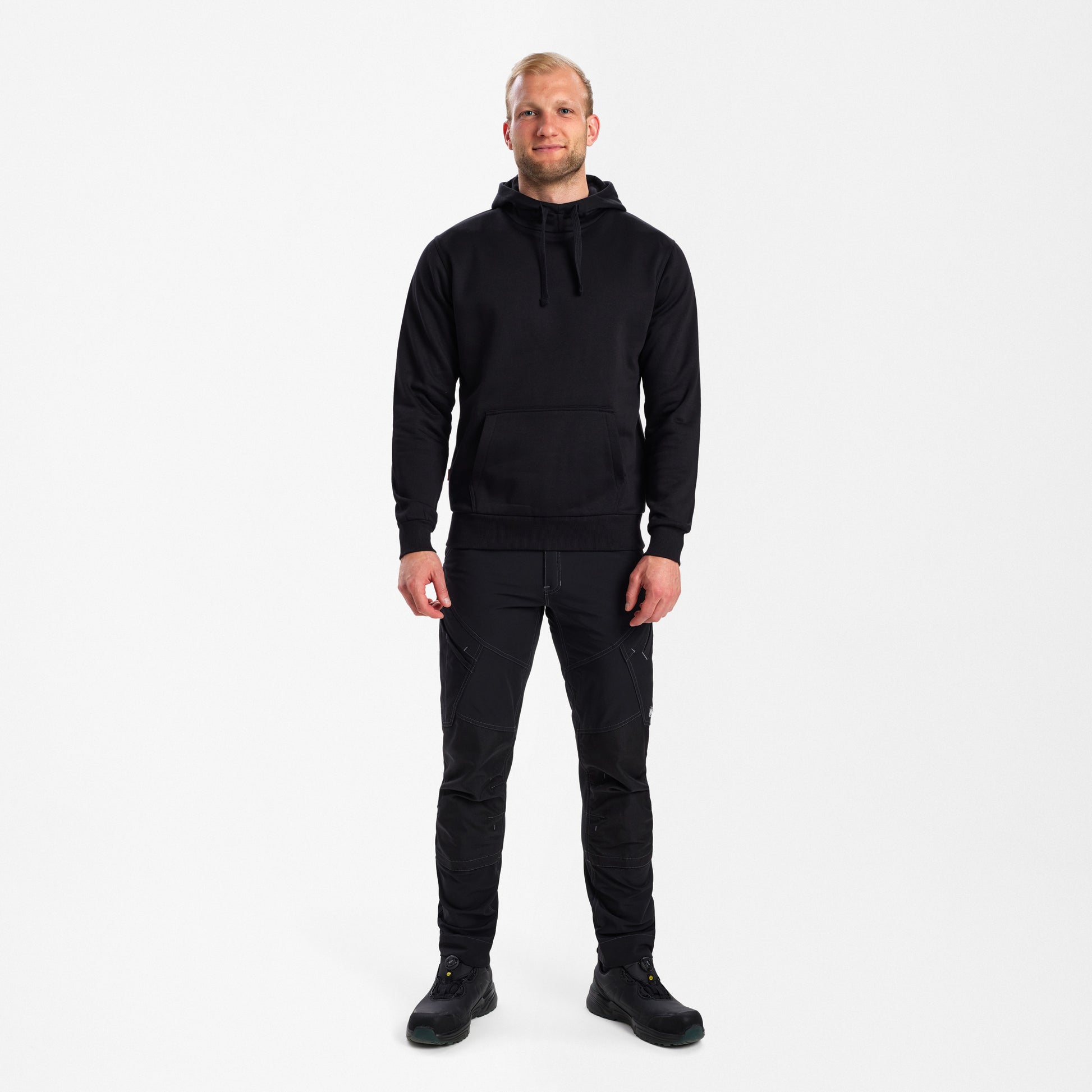 Schicke, angenehm zu tragender Hoodie mit praktischer Kängurutasche vorne. Aus 70% Baumwolle. Der Hoodie hat eine gebürstete Innenseite für mehr Komfort sowie verstärkte Nacken- und Schulternähte. Vorgewaschenes Material sorgt dafür, dass der Artikel formstabil ist und das die Form auch nach vielen Wäschen hält.