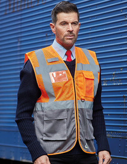 Entspricht der US-amerikanischen Norm ANSI / ISEA 107-2004 und der europäischen Norm EN ISO 20471:2013 Class 1und2 | Hauptstoff aus recycelten PET-Flaschen | Aus atmungsaktiver leichter Maschenware für ein leichtes Ausschwitzen in einer warmen Arbeitsumgebung | 5 cm breite Reflektions-Streifen um den Körper und auf jeder Schulter | Durchgehender Reißverschluss vorne | Viele äußerst nützliche Taschen und eine Schlaufe für ein Funkgerät bieten ausgezeichneten Komfort | Handy- / Funkgerätetasche auf der linken Brust | Zwei Taschen mit Klappen, zugänglich von oben und von der Seite | Stifttaschen und Schlüsselhalter | Ausweistasche auf der rechten Brustseite | Der Hersteller gewährleistet die Reflektionseigenschaft gemäß EN-Norm für 25 Waschgänge | Dies ist ein Artikel zur Persönlichen Schutzausrüstung (PSA). Gemäß EU-Verordnung 2016/425 über persönliche Schutzausrüstung ist eine EU-Konformitätserklärung seitens des Herstellers Pflicht. Diese stellen wir Ihnen auf Anfrage gerne zur Verfügung.