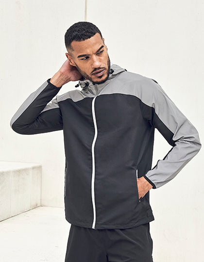 3-teilige Kapuze mit einstellbarem Kordelzug und Knebelknöpfen | Reflektierender Einsatz über Brust, Schultern und Ärmeln | Wasserabweisendes und atmungsaktives Gewebe | Stretch-Bündchen an Ärmeln | Einstellbarer Bund mit Knebelknöpfen und Kordelzug | Zwei Reißverschluss-Taschen | Alle Reißverschlüsse mit Feststellschiebern | Tombo-Abreißetikett