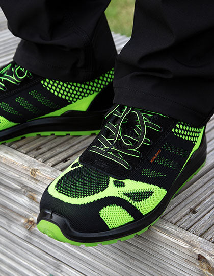 Obermaterial: Polyester Netzfutter „Flyknit“ mit Rand aus Wildleder; Sohle: PU mit zweifach Verstärkung; Zehenschutz: Stahlkappe | Technische Information: CE EN 20345:2011 SB SRA | Atmungsaktiv und strapazierfähig | Abfederung im Fersenbereich | SRA rutschhemmend | Polsterung unter der Schnürung und am Schaft | Ersatzeinlegesohle | Zehenkappe aus Stahl | Ölbeständig | Fersenschlaufe | Dies ist ein Artikel zur Persönlichen Schutzausrüstung (PSA). Gemäß EU-Verordnung 2016/425 über persönliche Schutzausrüstung ist eine EU-Konformitätserklärung seitens des Herstellers Pflicht. Diese stellen wir Ihnen auf Anfrage gerne zur Verfügung.