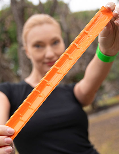Buntes Promo-Schnappband mit Metallkern | Große Druckfläche | Orange, Red, Green zertifiziert nach EN 71 | Das Band schnappt zu und wickelt sich um das Handgelenk, den Arm oder den Knöchel | Einzeln in Polybeutel verpackt | Ausgestattet mit EAN Barcode | Dies ist ein Artikel zur Persönlichen Schutzausrüstung (PSA). Gemäß EU-Verordnung 2016/425 über persönliche Schutzausrüstung ist eine EU-Konformitätserklärung seitens des Herstellers Pflicht. Die Konformitätserklärung ist auf www.korntex.com verfügbar.