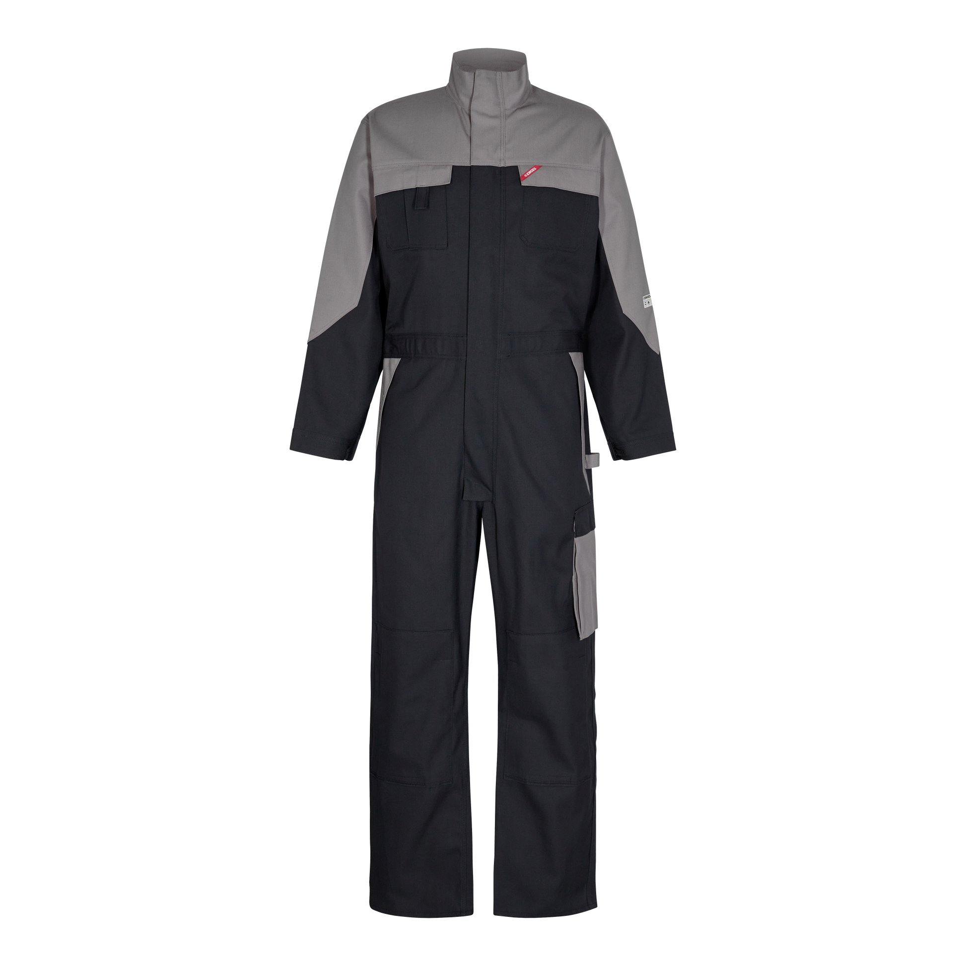 Overall mit doppelter Knopfleiste und verdeckten Druckknöpfen vorne. Brusttaschen mit Patte und Klettverschluss, die Rechte mit Handytasche, zwei Innentaschen mit Reißverschluss, Manschetten mit Klettverschluss. Rückenfalten sorgen für bessere Bewegungsfreiheit, zwei mit Patte verdeckte Einschubtaschen, Knieverstärkung/Knietaschen mit Klettverschluss unten, verstärkte Gesäßtaschen mit Patte, Hammerschlaufe, Zollstocktasche. Funktionelle Details an Taschen und Bund verhindern das Festsetzen der Funken. Antistatisch, flammhemmend und schützend vor Aerosolen, Spray und leichten Spritzern von Chemikalien.