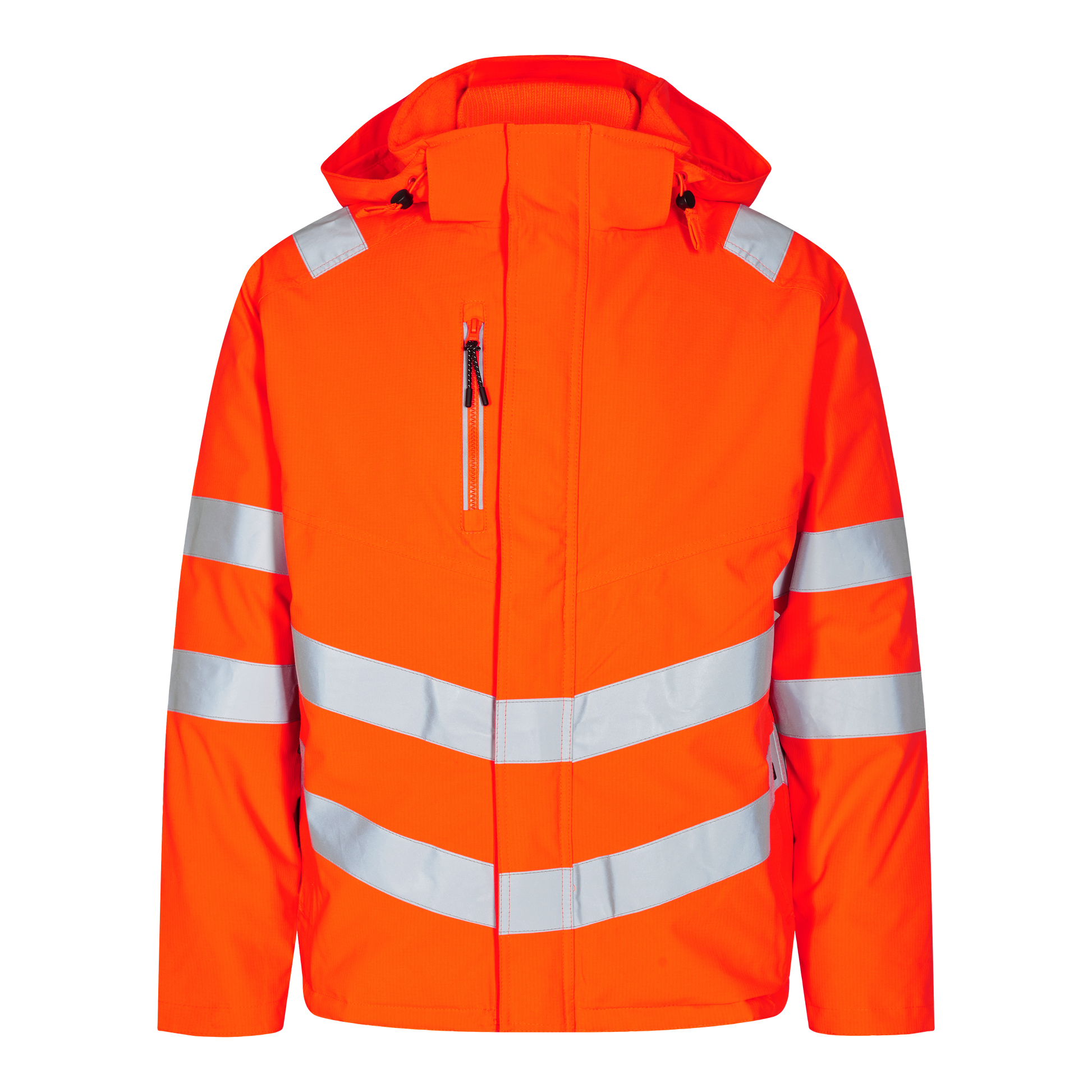 Atmungsaktive, wasser- und winddichte Winterjacke mit verschweißten Nähten und im modernen Design. Die Jacke hat einen hohen Kragen und ist hinten länger geschnitten. Doppelte Knopfleiste mit Reißverschluss sowie Klettverschluss vorne. Geräumige Seitentaschen, Brusttasche und Innentasche, alle mit Reißverschluss. Abnehmbare, verstellbare Kapuze mit ausreichend Platz für den Arbeitshelm. Verstellbarer Windfang unten, der Wind und Wetter abhält. Rippstrick an Ärmelabschluss und Kragen schützt vor Zugluft. Reißverschluss im Futter, der sich für Aufdruck/Stickerei eignet. Reflexstreifen über die Schulterpartie hinweg sowie rund um Ärmel und Taillen. Bekleidungsklasse 3. Nach 50 mal Waschen getestet.