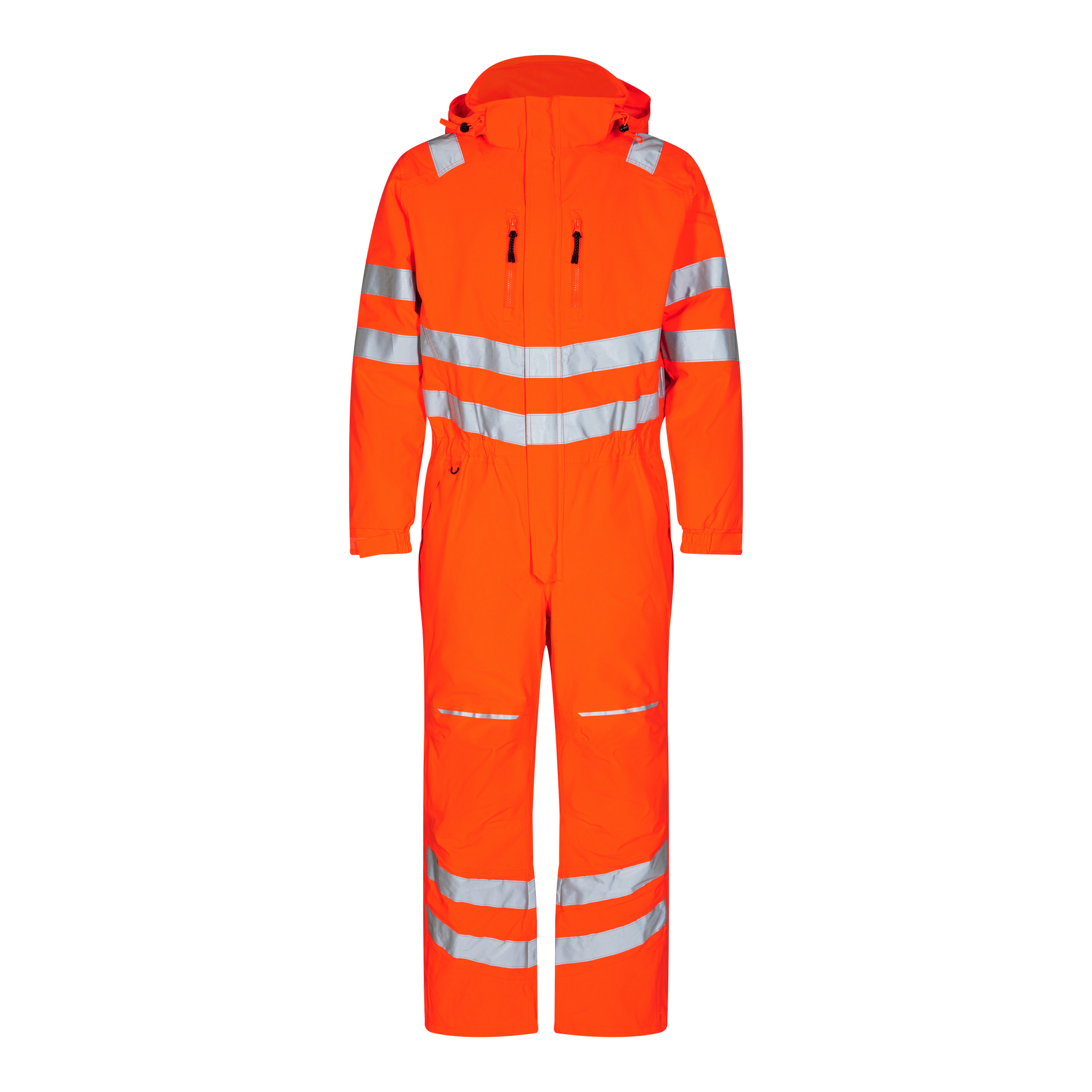 Fluoreszierende, atmungsaktive sowie wasser- und winddichte Winteroverall mit verschweißten Nähten und hohem Kragen im modernen Design. Doppelte Knopfleiste mit Reißverschluss sowie Klettverschluss vorne. Zwei geräumige Seitentaschen mit Klettverschluss. Zwei Brusttaschen und eine Reißverschluss-Handytasche, durch die man ein Kabel durchziehen kann. Abnehmbare Kapuze mit ausreichend Platz für den Arbeitshelm. Rippendetail im Lendenbereich hinten, das für gute Passform und Bewegungsfreiheit sorgt. Knieverstärkung. Verstellbare Bündchen an den Ärmeln und an den Hosenbeinen unten. Reißverschluss an der Außenseite beider Hosenbeine. Reißverschluss im Futter, geeignet für Aufdruck/Stickerei. Reflexstreifen über die Schulterpartie hinweg sowie rund um Ärmel, Taille und Beine. Bekleidungsklasse 3. Nach 50 mal Waschen getestet.