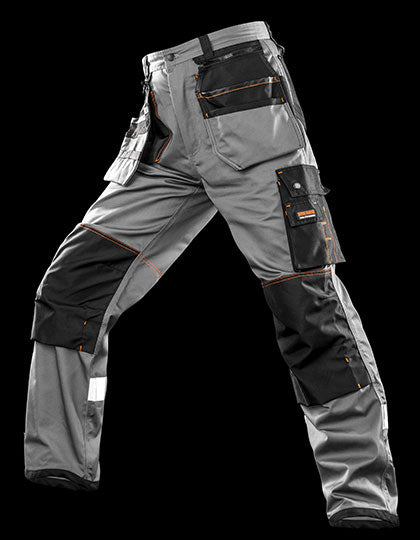 Abnehmbare, multifunktionale Vordertaschen | Verstärkte Kontrastnähte an den stark beanspruchten Stellen | Cargotaschen und Gesäßtaschen | Reißverschluss mit Nietenverschluss | Reflektierende Streifen am Bein hinten | Gürtel- und Hammerschlaufen | Saum am Fußgelenk aus Cordura® | Kniepolstertaschen und Taschen aus 600D Oxford Polyester mit PU-Beschichtung | Gürtelschlaufen | D-Ringe | Winddicht und atmungsaktiv | Baumwoll-Twill