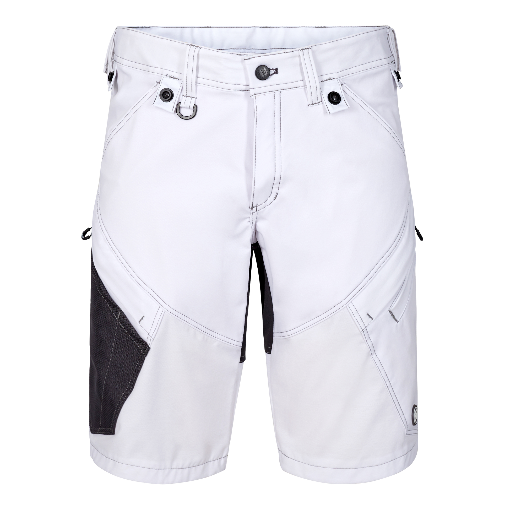 Funktionelle Handwerkershorts mit einer modernen Passform und vielen praktischen Details. Optimale Passform. Der Stoff mit bequemem 4-Wege-Stretch bietet erstklassige Haltbarkeit und Atmungsaktivität. Das Gewebe hat hervorragende feuchtigkeitsabsorbierende Eigenschaften, trocknet schnell und ist deshalb besonders komfortabel. Knöpfe für das leichte Anbringen von Holstertaschen. D-Ring vorne für die Befestigung von z. B. Ausweisen. Zwei geräumige Schrägtaschen vorn. Zwei Gesäßtaschen. Zwei Schenkeltaschen mit Reißverschluss. Die linke Schenkeltasche hat eine zusätzliche Handytasche. Die rechte Schenkeltasche ist mit einer aufgesetzten Zollstocktasche mit zusätzlichen Unterteilungen versehen.